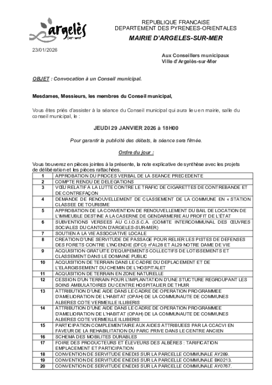 | 23 | CONVENTION DE SERVITUDE ENEDIS PARCELLE AZ 0394 |