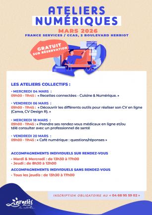Découvrez les ateliers numériques du mois de février 2026, proposé par le Centre Communal d'Action Sociale (CCAS) afin de vous familiariser avec l'informatique et les nouvelles technologies.