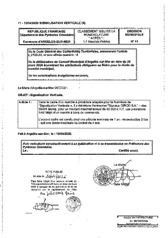 Décision municipale du 20 avril 2026 l Signalisation verticale